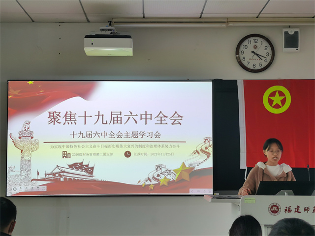 2021年11月25日下午,福建师范大学经济学院2020级财务管理第二团支部在福建师范大学旗山校区教学楼知明楼1-403顺利开展了以“学毛泽东思想,行新青年担当”为主题的团立项活动。
