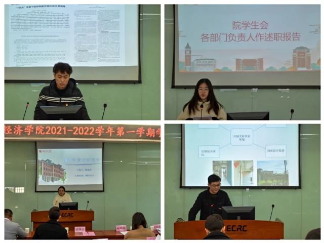 12月29日下午,为深入贯彻习近平新时代中国特色社会主义思想特别是习近平总书记关于青年工作的重要讲话精神和团的十八大、全国学联二十七大会议精神,持续深化学生会组织改革,加强队伍制度建设和作风建设,推动学生会管理工作科学化、规范化、体系化,我院在人文楼道德讲堂顺利召开了经济学院2021-2022学年第一学期学生会(研究生会)工作人员述职评议大会,院党委副书记(主持工作)颜隆忠、院团委书记张翼、各年级辅导员、本科生及研究生学生代表出席此次会议。
