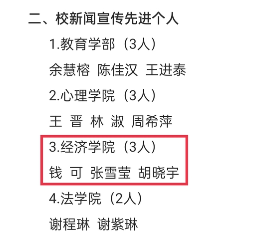 为树立先进典范形象,表彰工作优秀团队和先进个人,弘扬主旋律,传播正能量,福建师范大学党委宣传部官方网站发布了“关于表彰福建师范大学2020-2021年度新闻宣传十佳学生团队、先进个人的决定”。我院新媒体发展与服务中心获“校十佳学生新闻宣传团队”荣誉,我院钱可、张雪莹、胡晓宇获“校新闻宣传先进个人”荣誉。