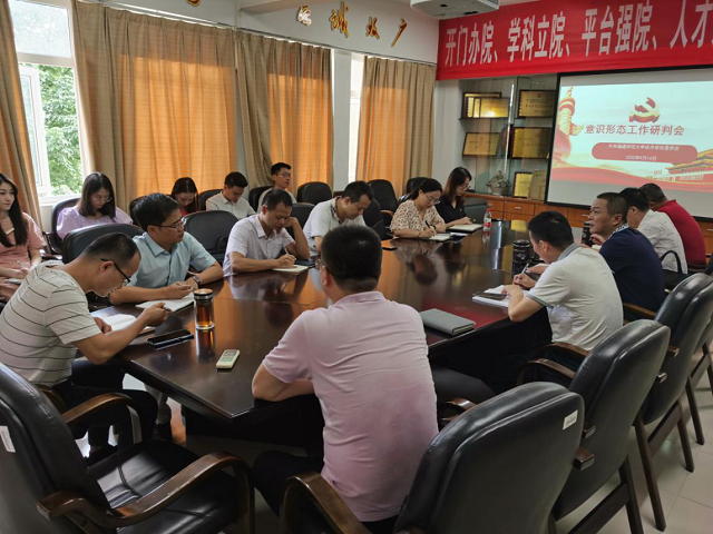 会议学习了《中国共产党宣传工作条例》,听取了各系、各年级抓意识形态工作汇报,对当前学院意识形态工作可能存在的风险点进行分析研判。会议认为,各系(室)、各年级抓意识形态工作有力有效,师生思想状况积极向上,学院稳定安定。会议要求,要进一步提高对意识形态工作极端重要性的认识,强化思想政治引领,坚持用习近平新时代中国特色社会主义思想武装师生头脑、指导工作学习,引导师生进一步增强“四个意识”、坚定“四个自信”、坚决做到“两个维护”。要严格落实意识形态工作责任制,严肃执行意识形态工作纪律和工作制度,落细落小落实抓好意识形态工作。要加强线上线下阵地建设和管理,时刻关注网络安全,规范师生网上行为,坚持正面宣传,壮大正能量,牢牢把舆论阵地掌握在手里。要继续加强师德师风建设,开展好“师德建设月”活动。要关心困难师生,切实为师生解难题、办实事。