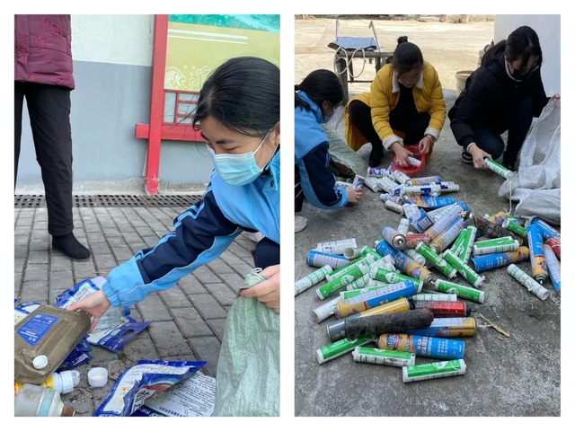 “环保过年,虎年分类不马虎”。减碳是每个人的责任,支部成员于假期中踏入乡村的千家万户,收集有害农业废物,并将“低碳生活”的绿色理念以倡议书的形式传递给每一个家庭,身体力行地争做节能减碳的宣传者。