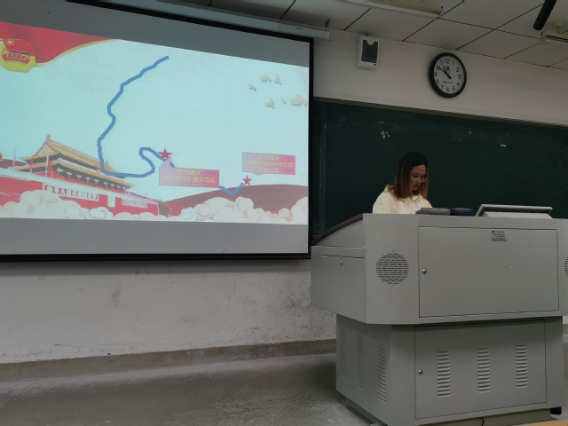 活动伊始,团支书吕雨晞同学向支部成员简要介绍了本次活动的主要内容和主旨,通过PPT带领支部成员了解、学习了红军长征的主要路线与途径的主要地点,以及在红军长征中发的红色故事、留下的红色遗址。通过对红军长征的追忆和学习,支部成员感触颇深,充分感受到了红军长征的艰苦卓绝与革命先烈们的热血勇敢,认识到了坚定理想信念的重要意义。紧接着,团支书邀请了几位来自长征途经省份的支部成员上台介绍他们的家乡与长征的故事并分享自己对长征精神的理解和感受。现场反应热烈,掌声不断,支部各成员踊跃参与,积极发言。最后,由团支书给本次团立项活动做了总结,再次带领大家学习体会伟大的长征精神,呼吁大家坚定理想信念,坚持正确方向,永远珍惜革命先辈为我们创造的美好生活。