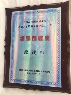 会议颁发了全国高校国家经济学基础人才培养基地建设二十年终身成就奖、卓越贡献奖和杰出贡献奖,我校原校长李建平教授荣获“全国高校国家经济学基础人才培养基地建设二十年终身成就奖”。李建平教授在担任校长期间,推动完善基地建设体制机制,把基地建设作为本科教育改革的重点来抓,充分发挥其示范、辐射作用,带动提升学校本科教学工作水平;担任理论经济学学科带头人期间,坚持马克思主义政治经济学的正确方向,不断推出高水平研究成果,打造一支老中青相结合、富有战斗力的人才队伍,以学科发展推动基地建设,保证基地取得长足进步。此外,经济学院李建建教授荣获“全国高校国家经济学基础人才培养基地建设二十年卓越贡献奖”。