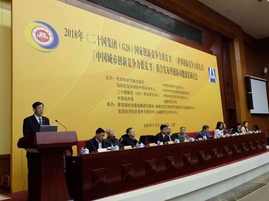 11月21日,由我校和科技部中国科学技术交流中心、国际欧亚科学院中国科学中心、中共中央党校国际战略研究院、二十国集团(G20)联合研究中心、中国城市报、中智科学技术评价研究中心、社会科学文献出版社联合主办的“2018年《二十国集团(G20)国家创新竞争力黄皮书》《世界创新竞争力黄皮书》《中国城市创新竞争力蓝皮书》联合发布暨创新动能激发研讨会”在中国社会科学院举行。中国社会科学院副院长蔡昉,国务院发展研究中心原副主任、中国农村劳动力资源开发研究会会长卢中原,国际欧亚科学院院士、中国科学中心秘书长、科技部二级专技赵新力,中国社会科学院数量经济技术经济研究所党委书记李富强,中央党校国际战略研究院原副院长周天勇,世界知识产权组织中国办事处业务主管张俊琴,中国国际经济交流中心信息部副部长王晓红,国际欧亚科学院中国科学中心执行秘书长刘洪海,科技部国家科技评估中心曹伟晓,人民日报中国城市报记者部主任张阿嫱,光明日报理论部原主任李向军,中国发展网总编辑卢必成,中国社会科学院信息情报研究院经济室主任卓丽洪,中国农村劳动力资源开发研究会秘书长苏宏文,中智科学技术评价研究中心理事长、我校兼职教授李闽榕,我校经济学院负责人等出席了会议。