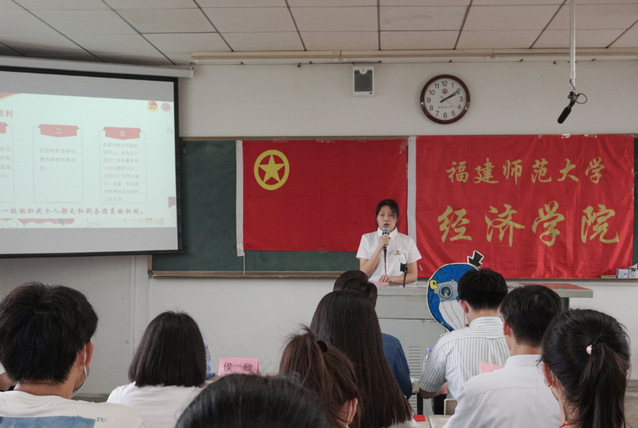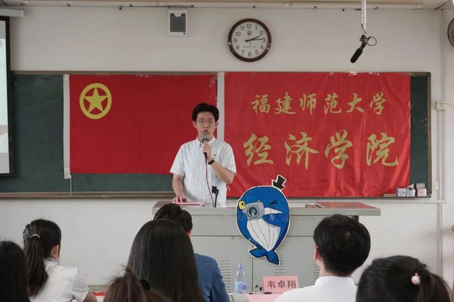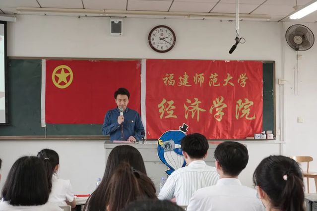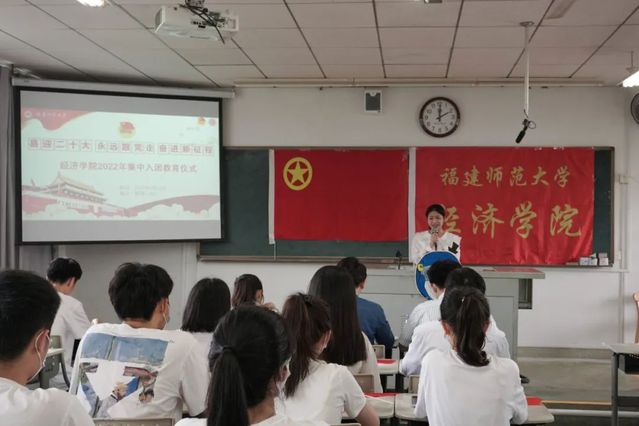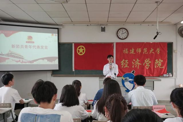 活动最后,学院团委书记张翼为大家讲授主题团课,领学习近平总书记在庆祝中国共产主义青年团成立100周年大会上的重要讲话精神。他强调新时代团员青年要牢记习近平总书记的嘱托,继续传承和发扬福建师范大学经济学院“全国五四红旗团委”荣光,永远跟党走、奋进新征程,用脚步丈量祖国大地、用眼睛发现中国精神、用耳朵倾听人民心声、用内心感应时代脉搏,让青春在奋斗和奉献中绽放绚丽光彩。他对全体新入团的同学们提四点寄语,希望与同学们共勉。一是立大志,做有志气的新时代青年,坚定与时代同向同行的信心,同人民一道拼搏、一道前进,服务人民、奉献祖国;二是明大德,做有正气的新时代青年,将核心价值观内化为精神追求,外化为自觉行动,不断加强道德修养,涵养浩然正气,做到“明大德、守公德、严私德”;三是成大才,做有底气的新时代青年,要一往无前、攻坚克难,以过硬的专业本领贡献青春智慧、展现青春力量;四是担大任,做有骨气的新时代青年,一个时代有一个时代的主题,一代人有一代人的使命,实现中华民族伟大复兴的中国梦,广大青年生逢其时,也重任在肩。