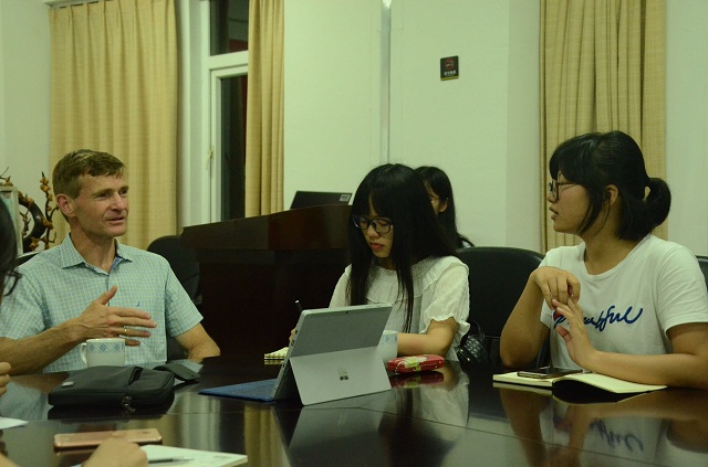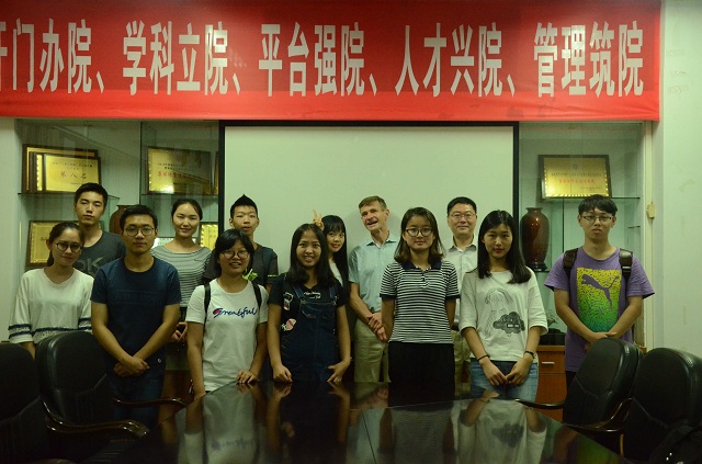 6月12日晚上,来自美国普吉特海湾大学的Andreas Udbye 博士于我院院办人文楼1-333会议室开展经济交流分享会。我院部分学生代表通过前期自主报名参与其中。本次交流会由经济学院院务委员王盛副教授主持,外国语学院2016级硕士生唐虹丽同学担任翻译。