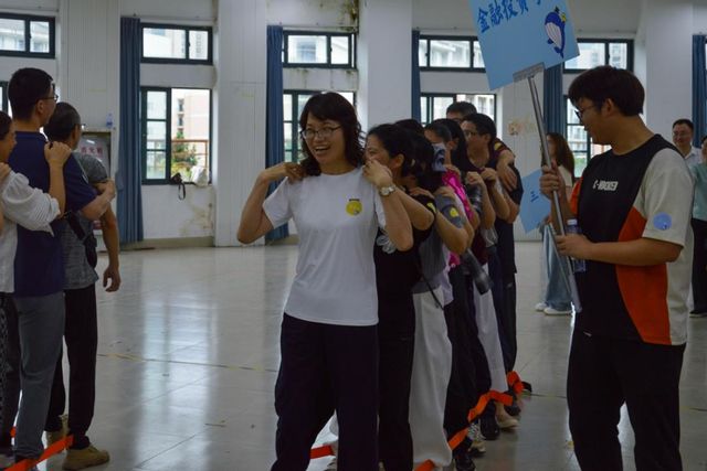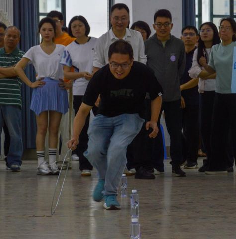 “巨人脚步”:十人同足,步调一致。该项目将团队协作推向高潮。比赛中,有的队伍口号响亮,步伐整齐,快速前进;有的队伍则因节奏不一而踉跄前进,但无人轻言放弃。每一支队伍的前进都伴随着全场的掌声与助威,充分展现了教职工顽强拼搏、团结互助的精神风貌。