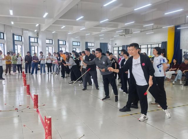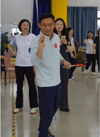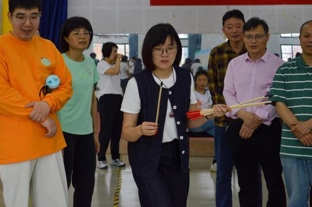 “箭无虚发”:凝神静气,一投定音。 在投壶赛场上,壶置于运动员身前1米处。只见老师们屏息凝神,轻轻一掷,箭支在空中划出弧线,有的稳稳落入壶中,引来阵阵喝彩,有的擦边而过,队友连声鼓励。