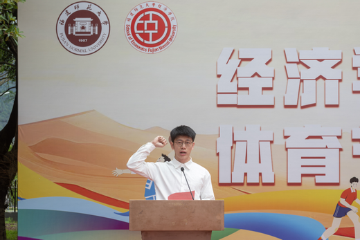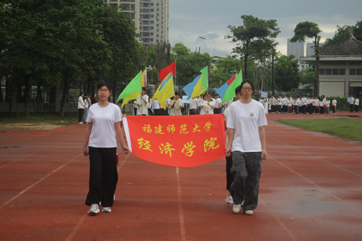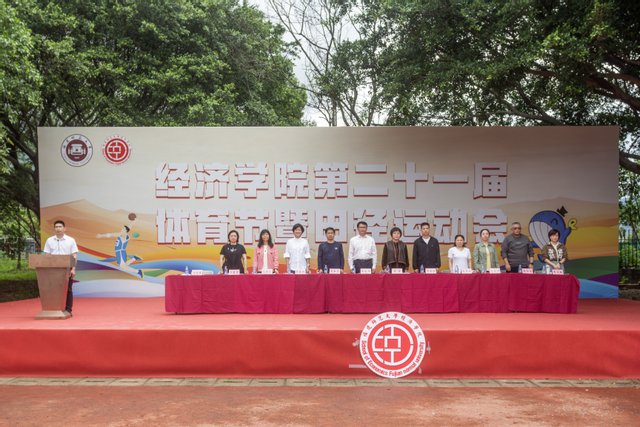 4月23日,福建师范大学经济学院第二十一届体育节暨田径运动会在旗山校区西区田径场隆重开幕。学院党委书记俞建群,院长黄瑾,院党委副书记叶龙祥,副院长戴双兴、鲁保林,院工会主席陈晓枫,各系负责人、全体辅导员及各年级学生参加开幕式。开幕式在庄严的国歌声中拉开帷幕。