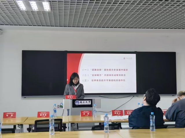 张林同学在“分论坛八:当代资本主义市场经济体制研究”汇报的题目是《全球南北差距持续存在的原因分析》。她基于世界银行等权威数据库,梳理了1960—2023年全球南北差距的历史演变,指出这一差距仍是国际社会面临的突出问题,也是全球经济格局演变中长期存在的核心矛盾。究其根源,在于发展中国家普遍陷入“道路选择”困境、全球南方内部未能形成有效联合,以及世界体系的不平等结构持续存在。对此,她提出三点建议:一是南方国家应探索符合本国国情的自主发展道路;二是全球南方需深化团结协作、凝聚集体力量;三是推动变革现行世界体系中的不平等规则。