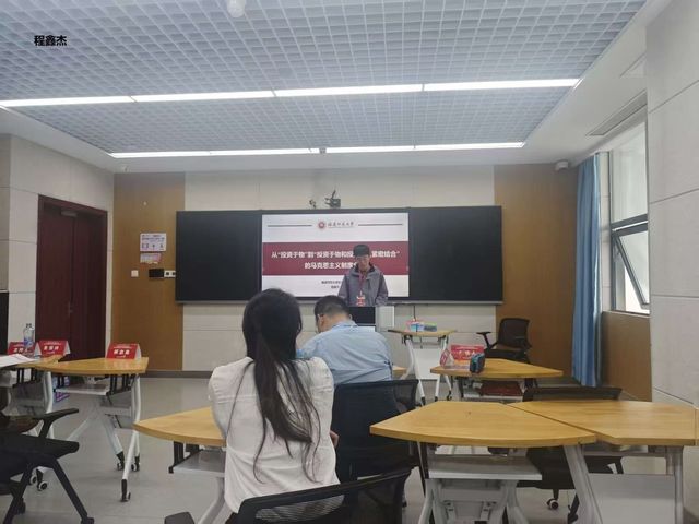 程鑫杰同学在“分论坛一:习近平关于高水平社会主义市场经济体制重要论述的研究”汇报的题目是《从“投资于物”到“投资于物和投资于人紧密结合”的马克思主义制度分析》。他运用中间层次的马克思主义制度分析框架,梳理我国传统“投资于物”模式的再生产循环逻辑与制度协同体系,并剖析其内生危机与循环梗阻的形成机理。面对当前危机与挑战,他提出,我国要以“投资于人”重构积累循环,构建人本型制度体系,推动物与人投资深度融合,筑牢高质量发展根基。